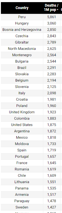 Covid mortality/per million population (data through June 10, 2021)